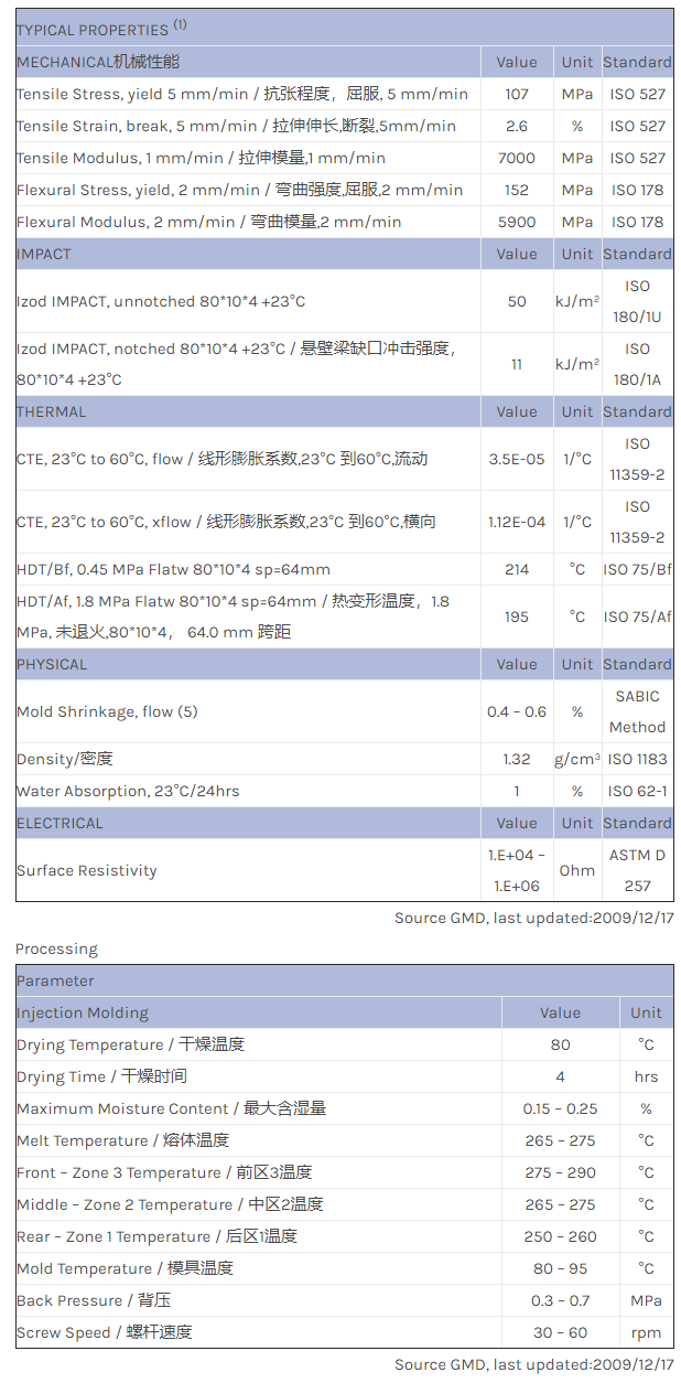 江门LNP STAT-KON PFD04ES是一种聚酰胺6(尼龙6)材料,含有的填充物为玻璃\炭粉,加工方式为:注射成型。