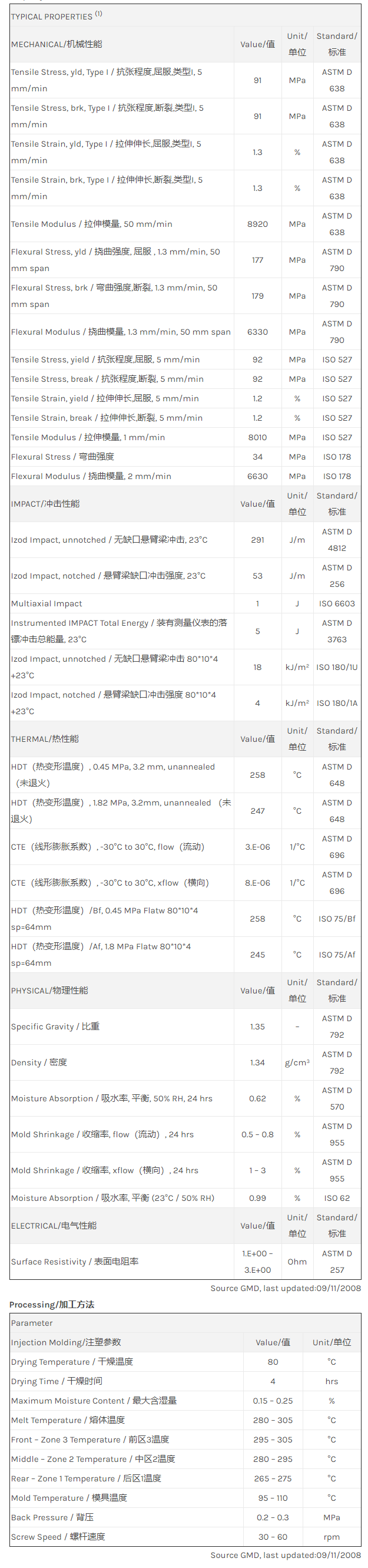 应用范围: 产品描述 LNP Statkon RFD03物性表 “LNP STAT-KON RFD03是一种聚酰胺66(尼龙66)材料,含有的填充物为玻璃\炭粉,加工方式为:注射成型。 LNP STAT-KON RFD03的主要特性为:传导性。” LNP* Stat-Kon* RF-15 is a Nylon 6/6 containing glass fiber. Property/特性