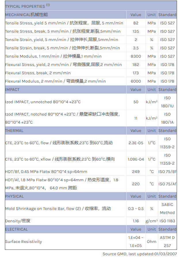 应用范围: 产品描述 LNP STATKON RX06001物性表 LNP* Stat-kon* RX06001 is a compound based on Nylon 66 resin containing Carbon Fiber. Added features of this material include: Easy Molding, High IMPACT, Electrically C