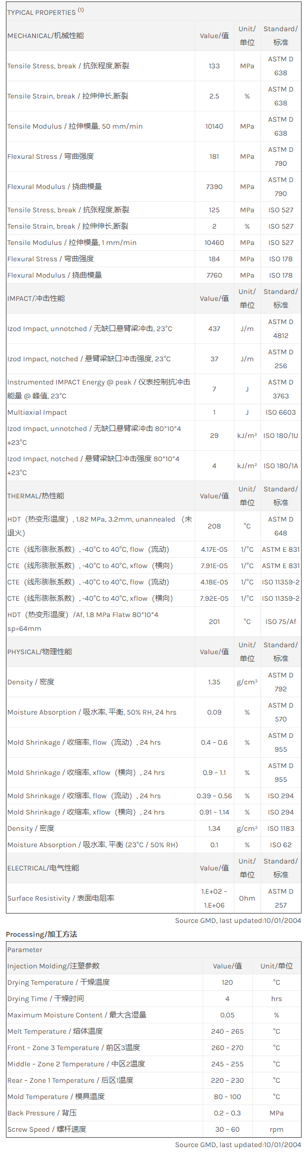 应用范围: 产品描述 LNP Statkon WE002物性表 “LNP STAT-KON WE002是一种聚丁烯对苯二甲酸酯(PBT)材料,含有的填充物为碳纤维增强材料,加工方式为:注射成型。 LNP STAT-KON WE002的主要特性为:传导性。” LNP STAT-KON* WE002 is a compound based on Polybutylene Terephalate res