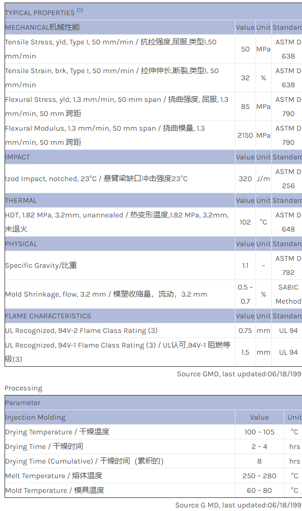 应用范围:产品描述NORYL PPO SE101X物性表易流动、中等耐热、阻燃、冲击改良PPO/HIPS合金化聚合物。仅有白色。