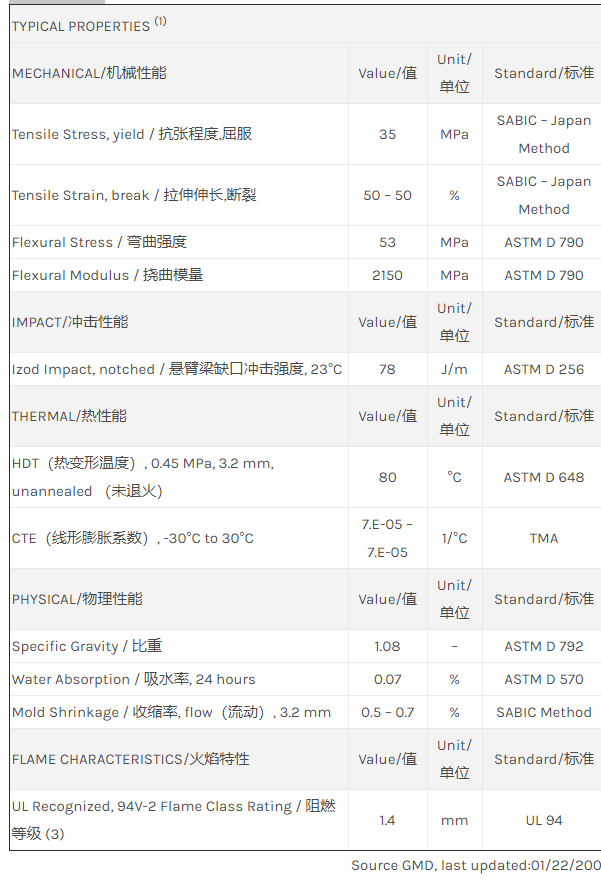 应用范围: 产品描述 Noryl PPO N802物性表 “NORYL N802 resin是一种聚苯醚+PS(PPE+PS)材料,该产品在亚太地区有供货。 主要特性有: 阻燃/额定火焰 Flame Retardant 高流动性 ” 相关颜色色号:N802-BK1066 Property/特性