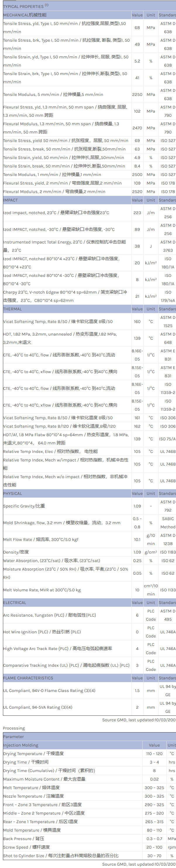 应用范围:产品描述NORYL PPO NH7010物性表NORYL NH7010 resin是一种聚苯醚+PS(PPE+PS)产品,可以通过注射成型进行加工。特性包括:阻燃/额定火焰Flame Retardant耐热无卤素