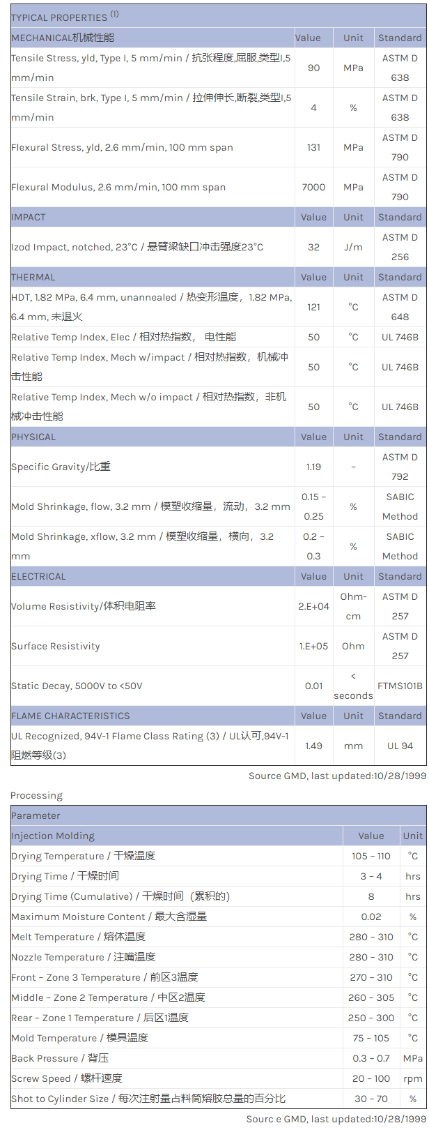 应用范围:产品描述LNP STATKON Noryl_PX5706物性表PRELIMINARY. Static dissipative NORYL resin.相关色号:PX5706-701