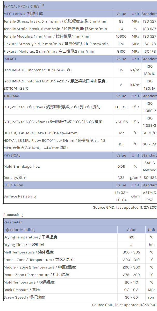 应用范围: 产品描述 LNP STATKON ZEL34XXC物性表 LNP STAT-KON ZEL34XXC是一种聚苯醚+PS(PPE+PS)材料,含有的填充物为碳纤维增强材料,加工方式为:注射成型。 LNP STAT-KON ZEL34XXC的主要特性有: 通过ROHS认证