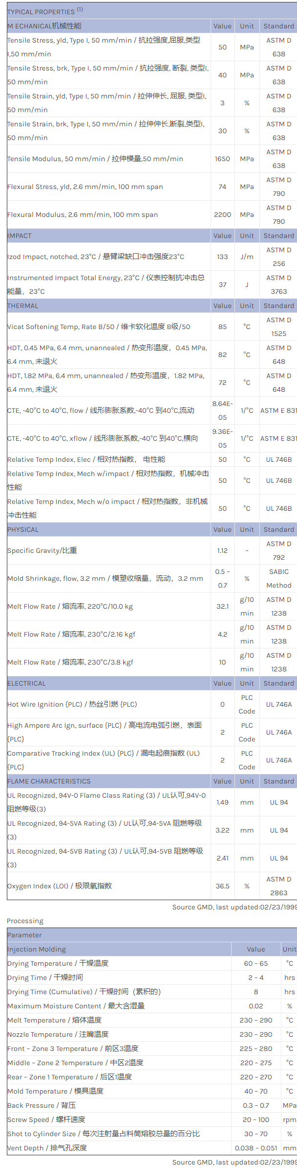 应用范围:产品描述NORYL PPO PX5622物性表PPE+PS blend. Unfilled. Non-brominated, non-chlorinated FR system. Good flow and surface aesthetics. UL94 V0/5VA/5VB. RTI Elec/Imp/Str 65. Suitable for E/E market indoor/outdoor