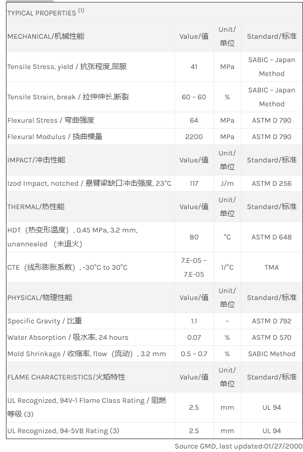 Noryl PPO SEH80物性表