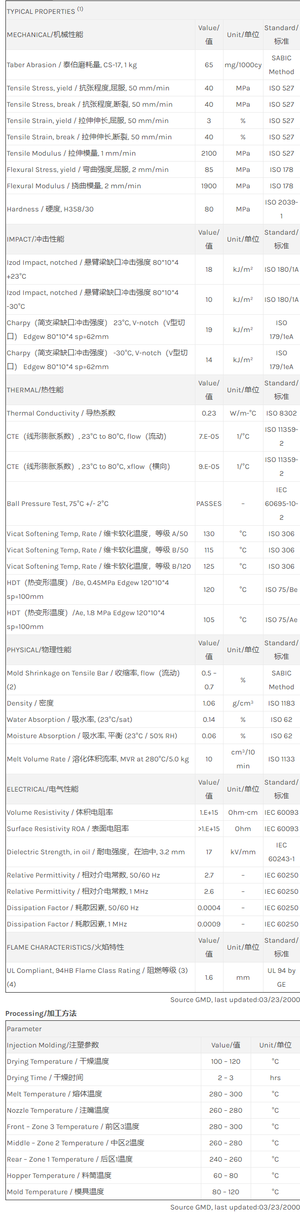 “NORYL PX1134 resin是一种聚苯醚+PS(PPE+PS)材料,加工方式为:注射成型。