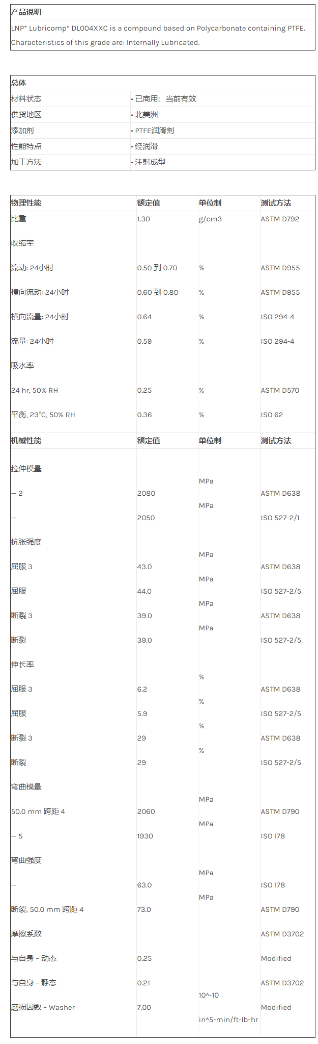 应用范围:产品描述LNP LUBRICOMP DL004XXC物性表
