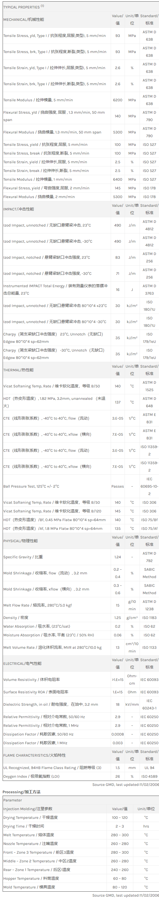 应用范围: 产品描述 Noryl PPO GFN1520V物性表 “NORYL GFN1520V resin是一种聚苯醚+PS(PPE+PS)产品,含有的填充物为20%玻璃纤维增强材料,可以通过注射成型进行加工。 特性包括: 阻燃/额定火焰 水解稳定性 ” 相关颜色色号:GFN1520V-801BZ2K、GFN1520V-701F、GFN1520V-801F、GFN1520V-960BZ2K