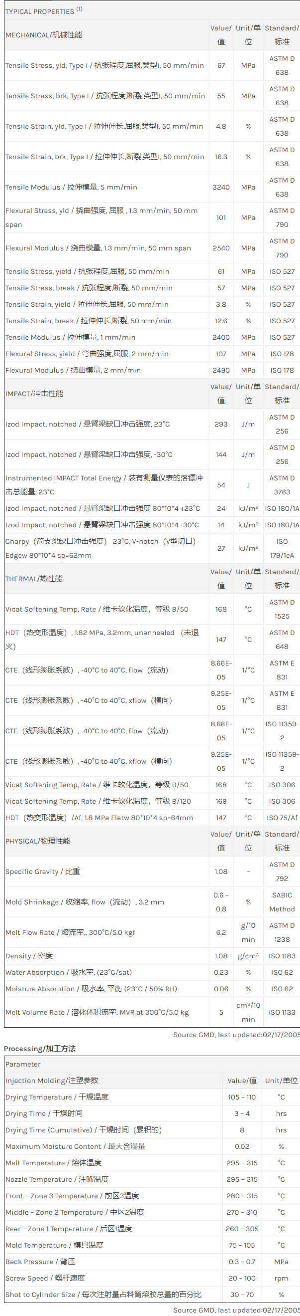 Noryl PPO HNA055物性表