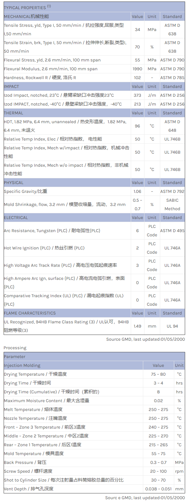 应用范围:产品描述NORYL PPO PX4608物性表FDA. High impact, DTUL 205F (96C), UL94 rated HB.