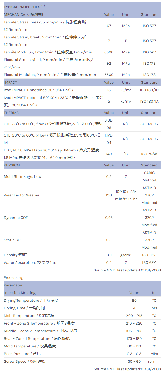 江门LNP LUBRICOMP KFL34XXC是一种聚甲醛(POM)共聚物材料,含有的填充物为玻璃纤维增强材料,加工方式为:注射成型。
