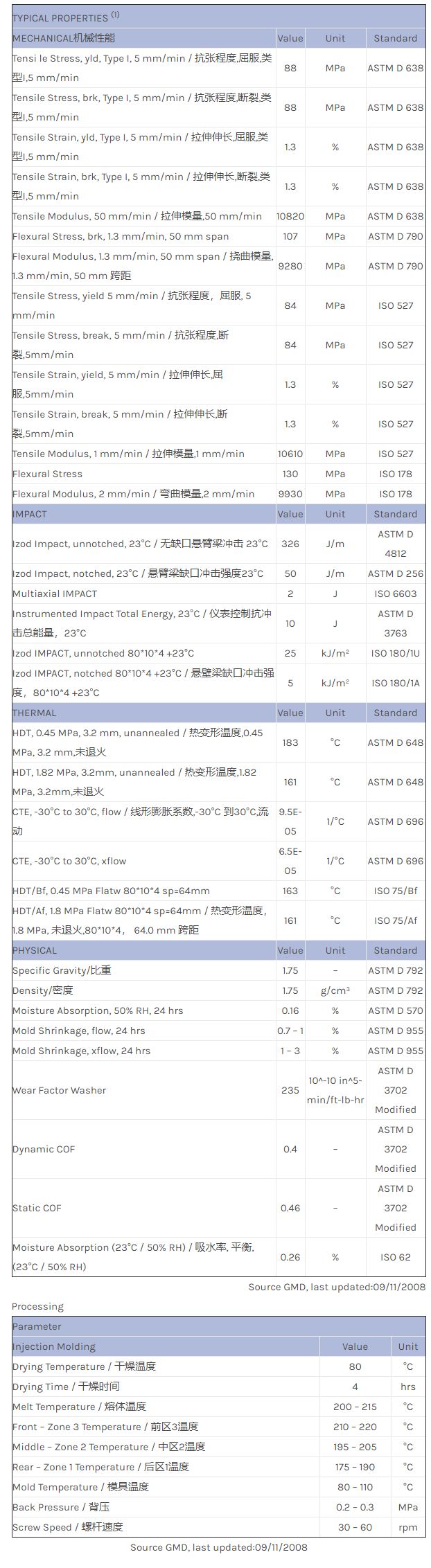 LNP* Lubricomp* KFL36 is an Acetal containing Glass Fiber and PTFE.