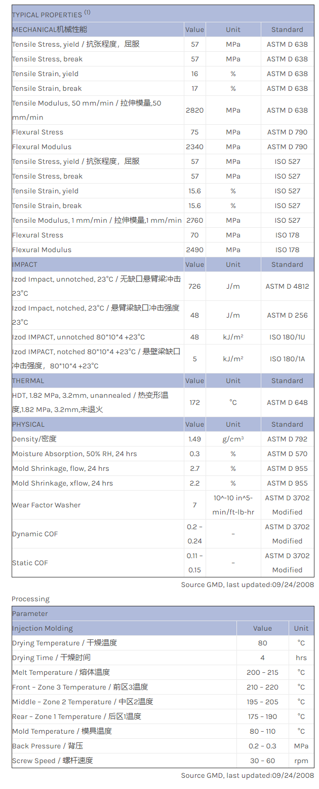 应用范围:产品描述LNP LUBRICOMP KX05449L物性表LNP* Lubricomp* KX05449L is a compound based on Acetal Homopolymer resin containing PTFE. Added features of this material include: Internally Lubricated.