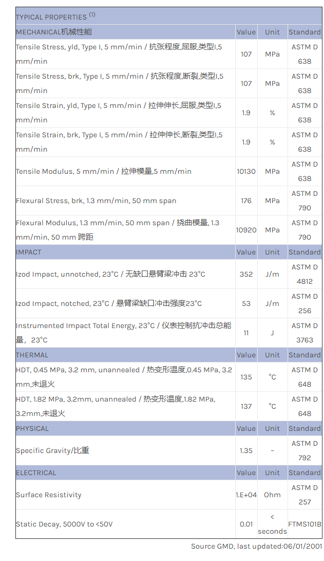 应用范围:产品描述LNP LUBRICOMP Lexan_EXCP0062物性表PRELIMINARY DATA. 15% carbon fiber reinforced PC and 15% PTFE additive For conductive, wear resistanct applications.