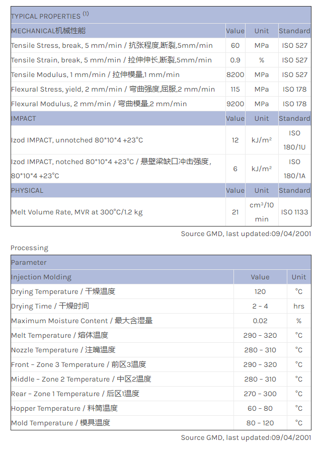 应用范围:产品描述LNP LUBRICOMP Lexan_EXCP0109物性表LNP* Lubricomp* Lexan_EXCP0109 compound is a 10% carbon fibre, 10% glass fibre and 10% PTFE filled PC injection moulding resin.