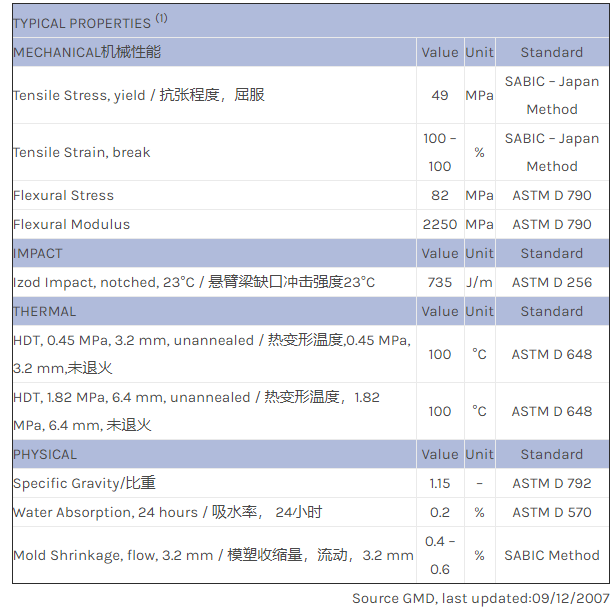 应用范围:产品描述CYCOLOY PC/ABS EBC3002物性表