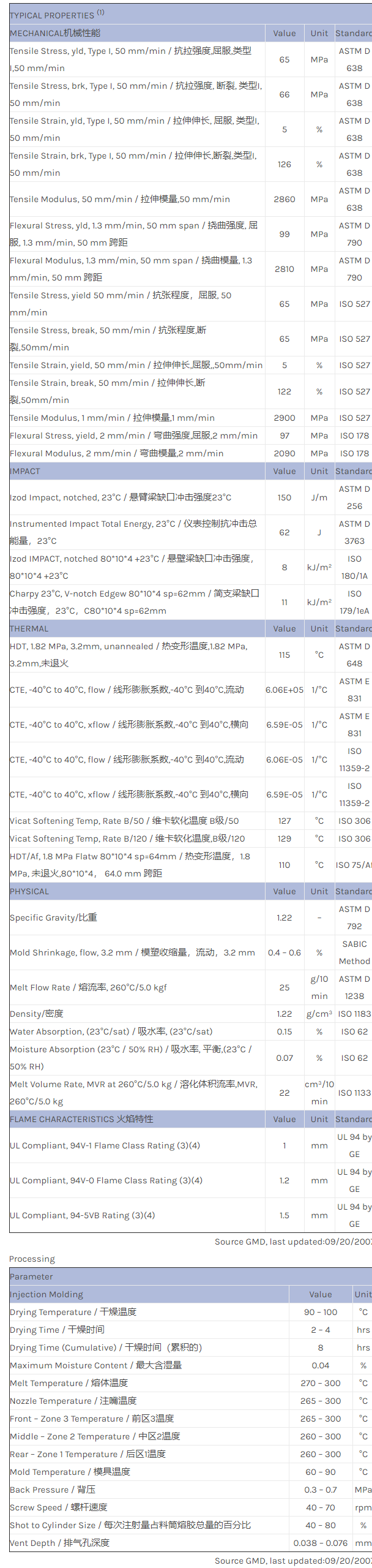 应用范围:产品描述CYCOLOY PC/ABS EXCY0198物性表High heat thin wall Cycoloy