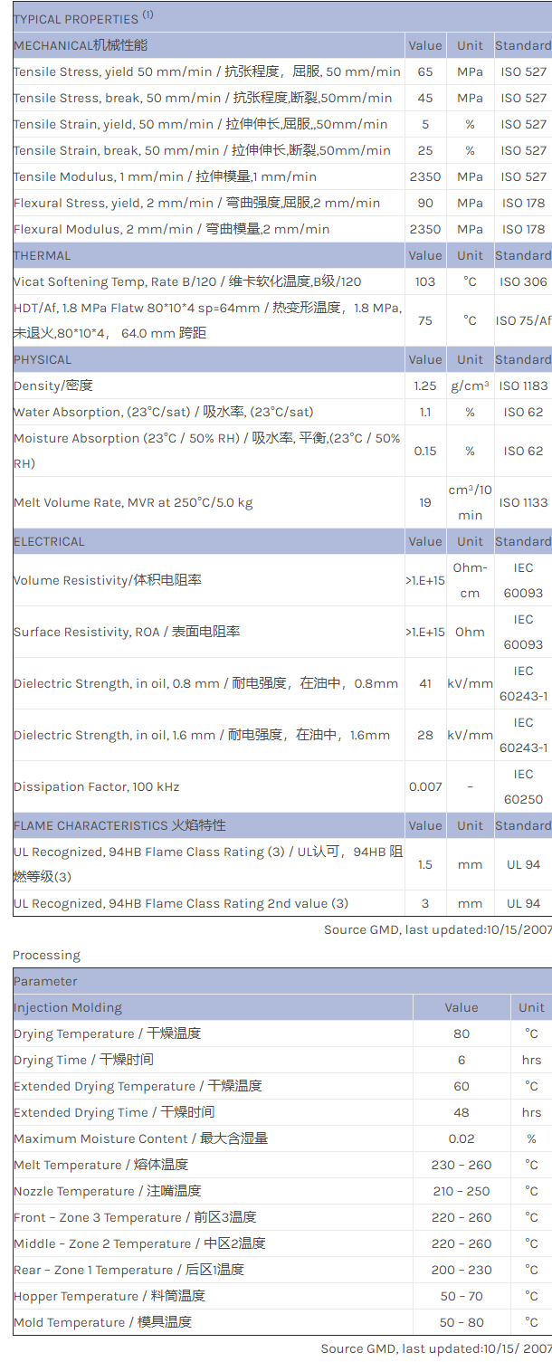 应用范围:产品描述CYCOLOY PC/ABS EXCY0200物性表Bio Cycoloy with 50% content from renewable sources using proprietary copolymer