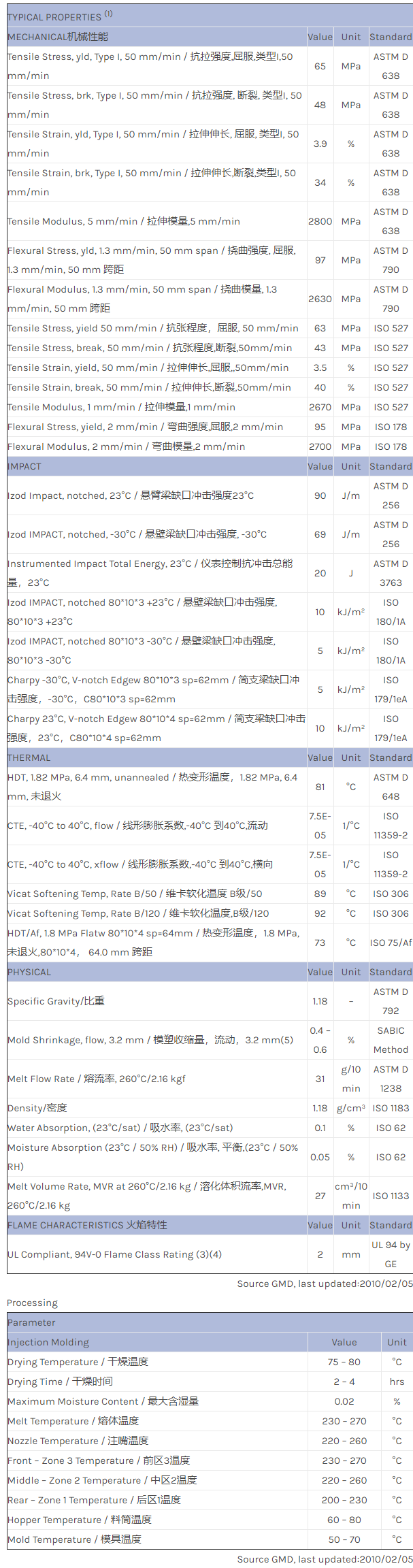 应用范围:产品描述CYCOLOY PC/ABS CY5005物性表Flame retardant PC/ABS blend using non-brominated and non-chlorinated flame retardant systems, offering hydrolytic stability and excellent flow for a wide variety of thin w