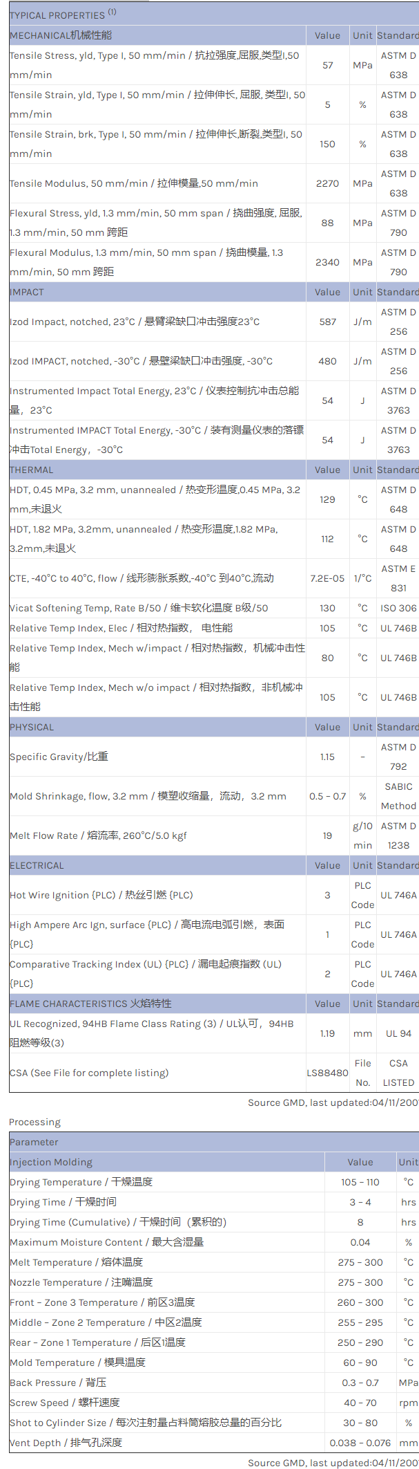 Cycoloy C1200HF resin是一种聚碳酸酯+丙烯腈丁二烯苯乙烯(PC+ABS)材料,加工方式为:注射成型。
