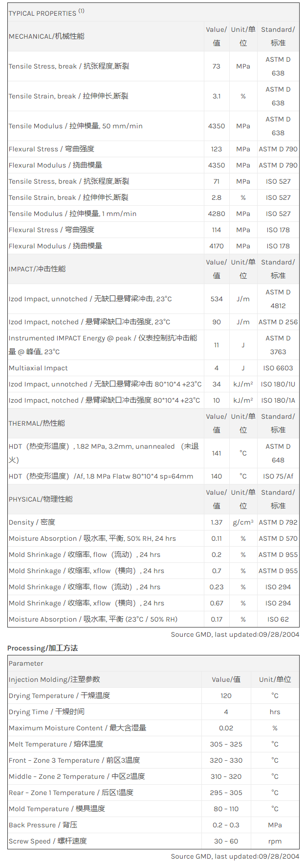 应用范围: 产品描述 LNP Lubricomp DFL32物性表 “LNP LUBRICOMP DFL32是一种聚碳酸酯(PC)产品,含有的填充物为10%玻璃纤维增强材料,可以通过注射成型进行加工。 主要特性为:润滑。” 相关颜色色号:DFL32-BK1A651 LNP LUBRICOMP* DFL32 is a compound based on Polycarbonate resin co
