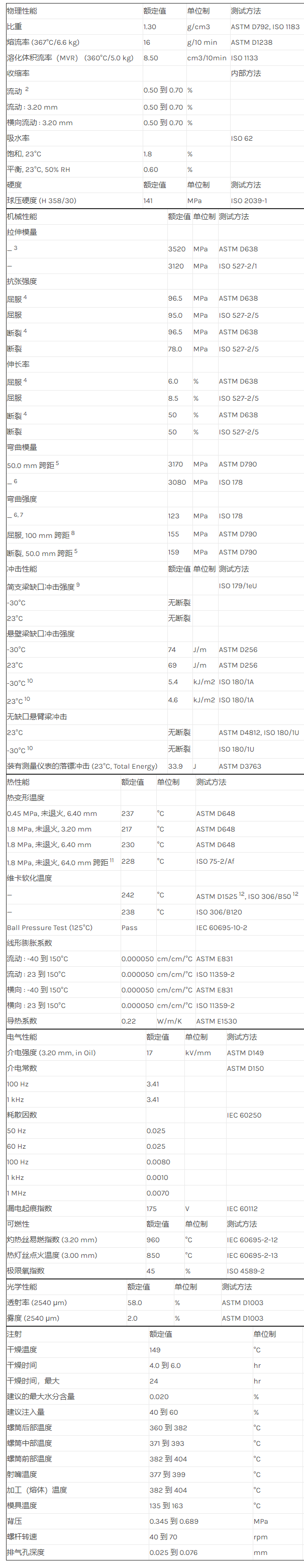 应用范围:产品描述Ultem PEI VH1003F物性表