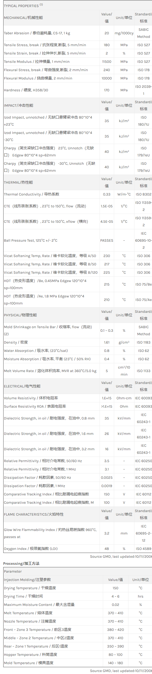 江门ULTEM PEI 2400F物性表
