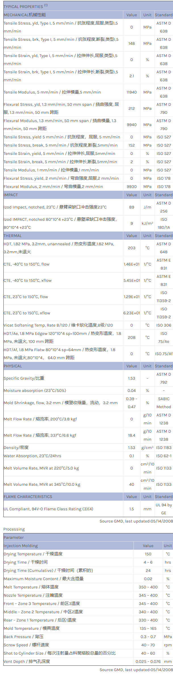 应用范围:产品描述ULTEM PEI EXUM0242物性表High flow Ultem for BiTS application