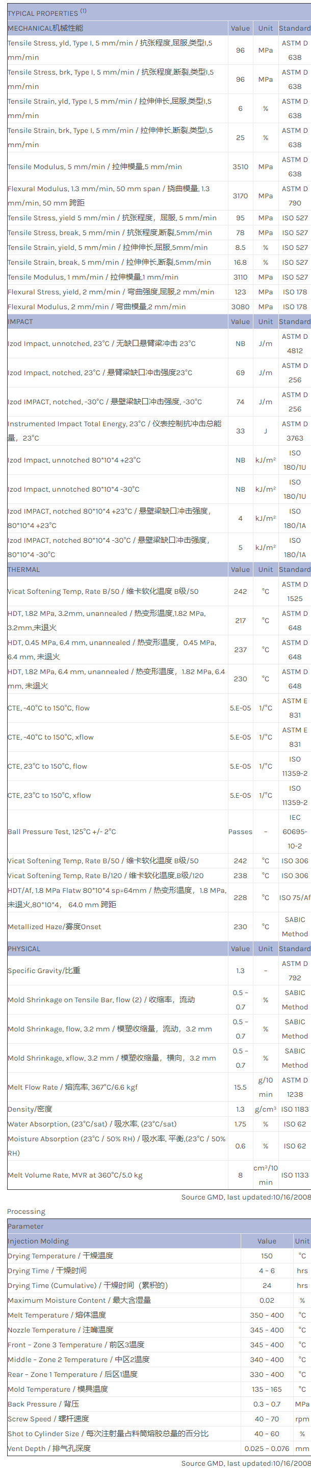 应用范围:产品描述ULTEM PEI EXUM0267物性表Transparent polyetherimide (Tg 247 degC). Very low outgassing & plateout, improved surface aesthetics, improved long-term heat aging performance