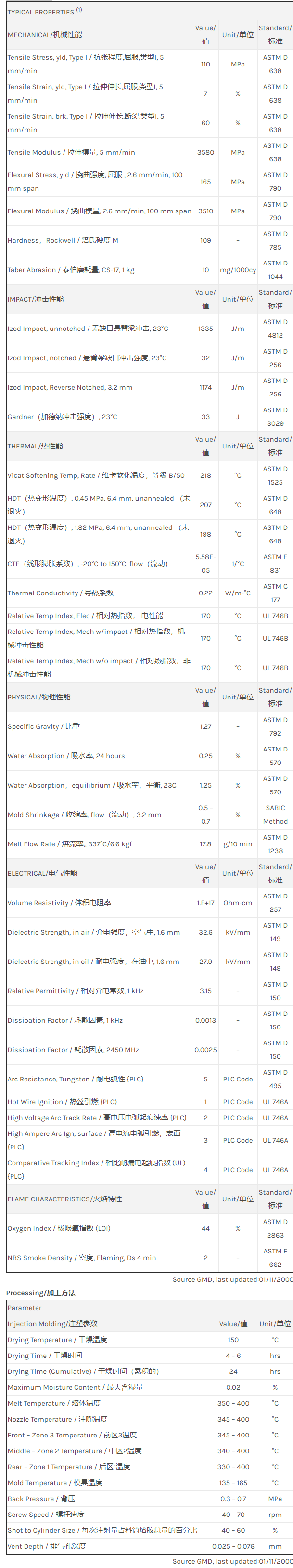 应用范围: 产品描述 ULTEM PEI 1010物性表 低粘度。较易充填制件,流动性高约25%。抗冲击性、耐热性、耐化学剂性优秀。 相关颜色色号:1010-7101、1010-BL3G020T、1010-BK1D423、1010-GY4E179、1010-1000、1010-GY6E624、1010-GY6G143、1010-1000USTC、1010-1000USDD、1010-21001、10