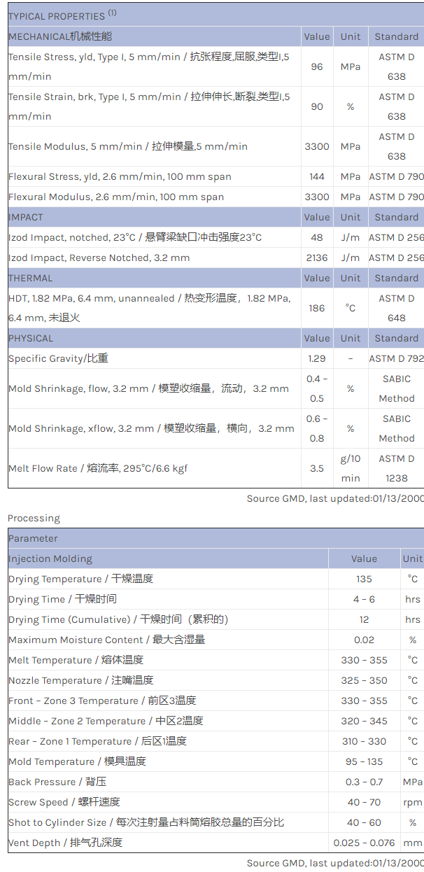 应用范围:产品描述ULTEM PEI MD110物性表LIMITED USE: PEI/PC blend. Sampling requires ATE or PM approval.