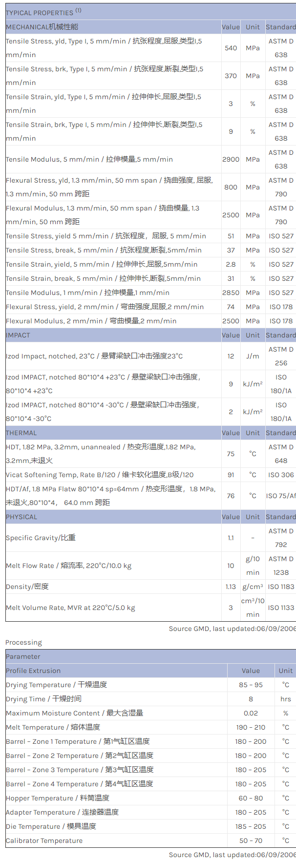 应用范围:产品描述Geloy ASA EXGY0042物性表Very weatherable profile extrusion grade ASA resin
