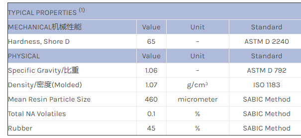 应用范围:产品描述Geloy ASA INP984物性表SABIC INP 984 is a 45% polybutyl acrylate rubber grafted weatherable ASA modifier resin. Provides excellent IMPACT, heat distortion and weatherability properties. Maintains poly