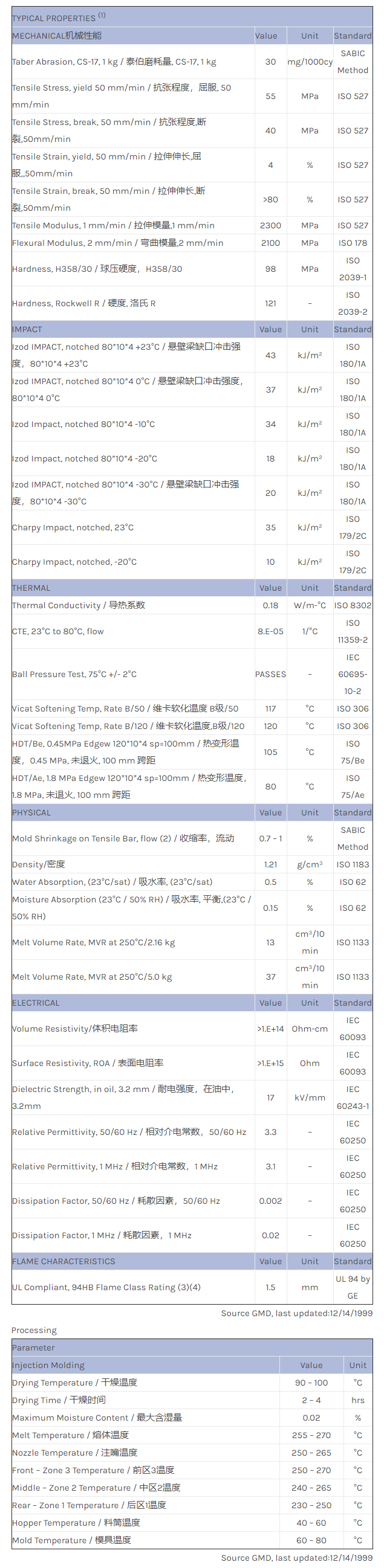 应用范围:产品描述XENOY PC/PBT/PET 1576VTC物性表Xenoy 1576VTC is a high flow material, for unpainted exterior automotive parts.