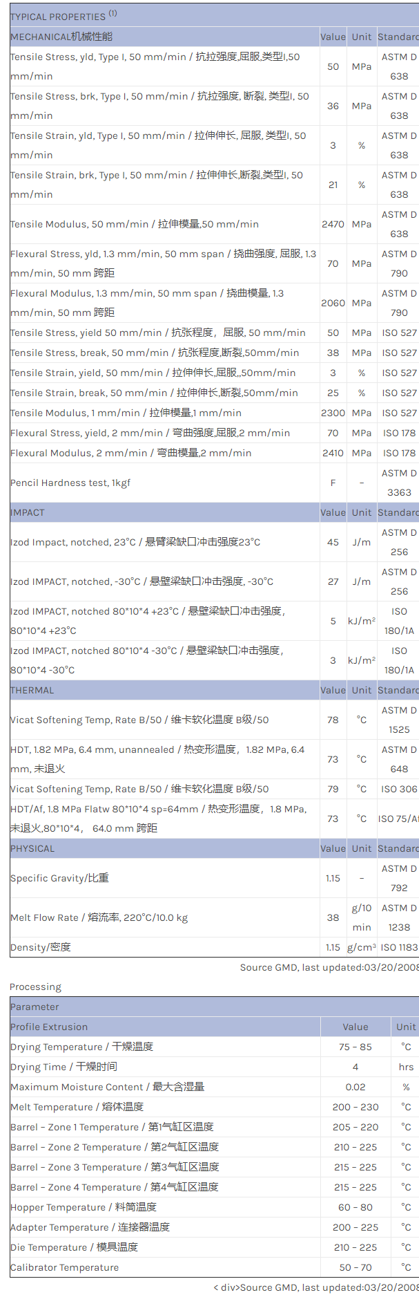应用范围:产品描述Geloy ASA EXGY0049物性表ASA/PMMA