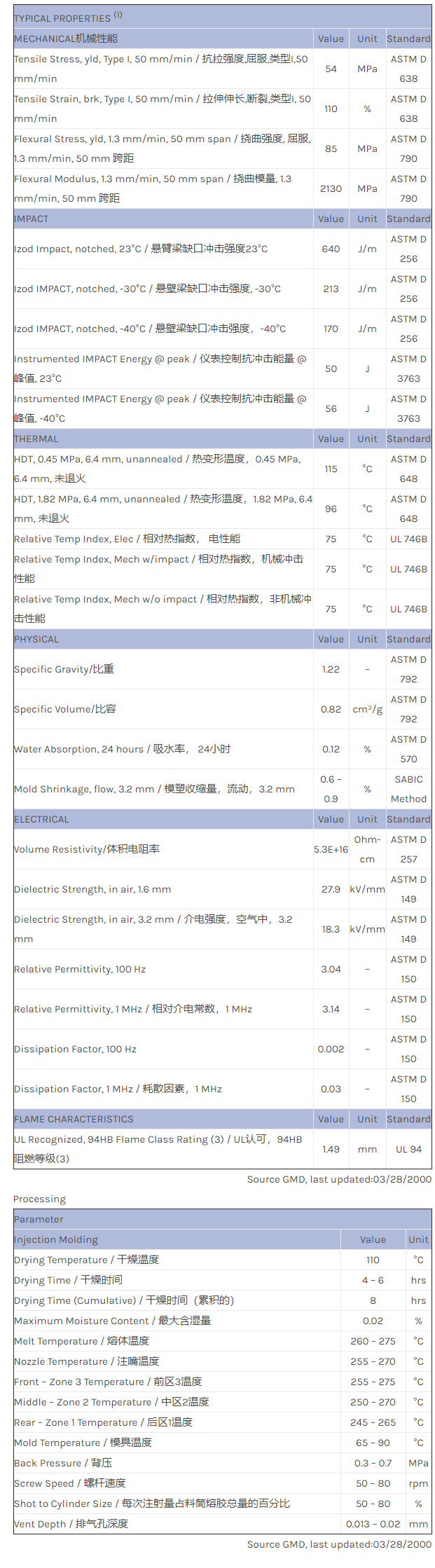 应用范围:产品描述XENOY PC/PBT/PET 5230R物性表Unreinforced PBT+PC alloy. Excellent impact/chemical resistance and dimensional stability. Internal mold release.