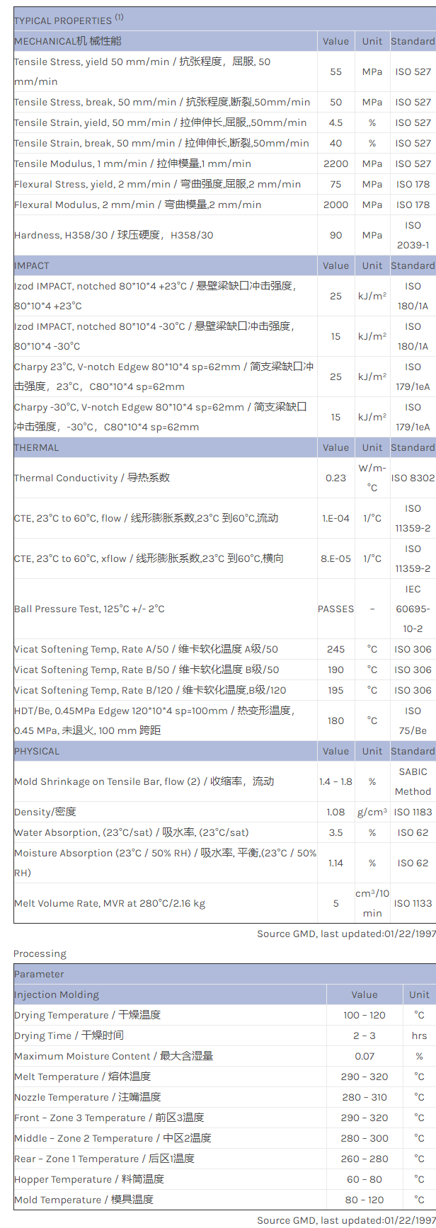 江门NORYL GTX GTX954物性表