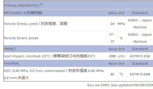 应用范围:产品描述NORYL GTX 1005物性表