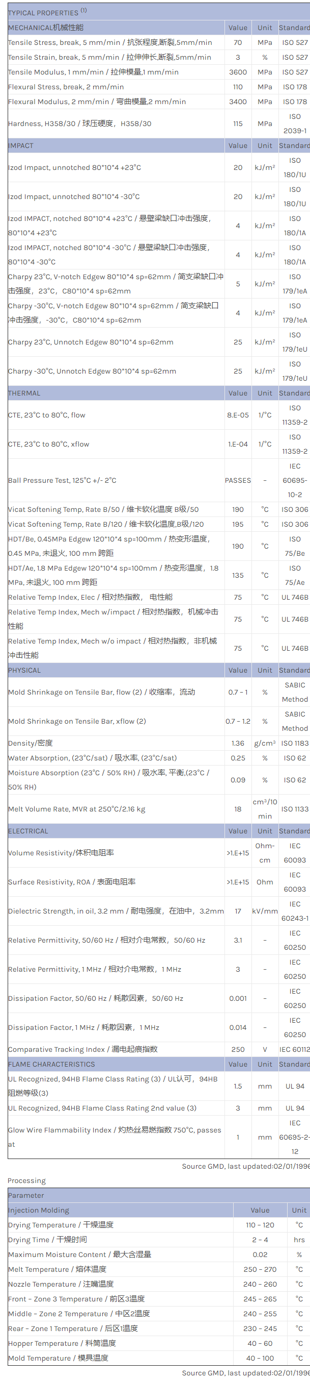 应用范围:产品描述Valox PBT 4014物性表VALOX 4014 is a 6% glass fibre reinforced PBT injection moulding resin with good flow characteristics.