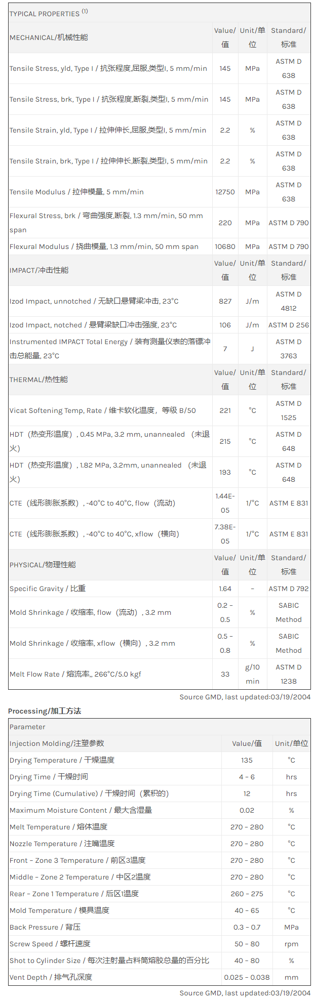 “Valox V8280 resin是一种聚对苯二甲酸丁二酯+PET(PBT+PET)产品,含有的填充物为40%玻璃纤维增强材料,它可以通过注射成型进行加工。