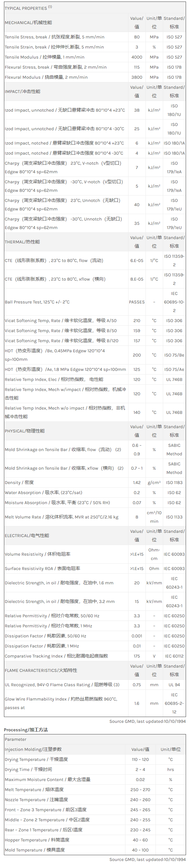 “Valox 4512 resin是一种聚碳酸酯+聚丁烯对苯二甲酸酯(PC+PBT)材料,含有的填充物为10%玻璃纤维增强材料。加工方式为:注射成型。