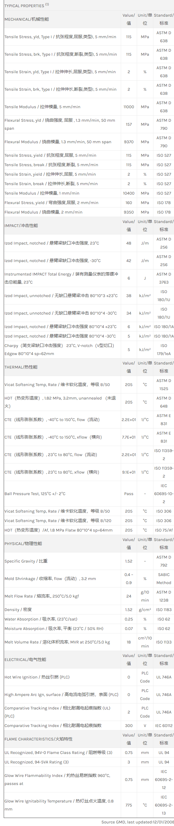 Valox PBT ENH4550物性表
