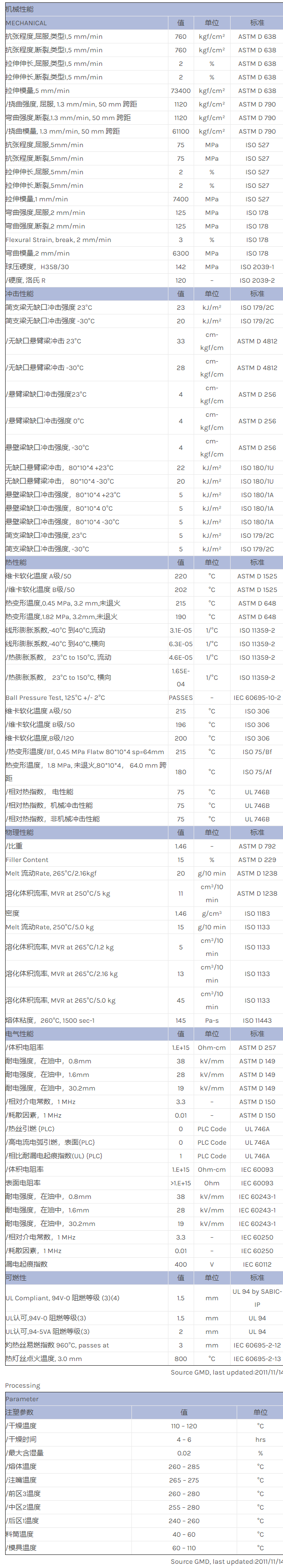 应用范围:产品描述VALOX PBT ENH8530物性表15%玻璃纤维增强材料PBT+PET,Non-Brominated & Non-Chlorinated Flame Retardant, 15% Glass fiber reinforced PBT/PET blend