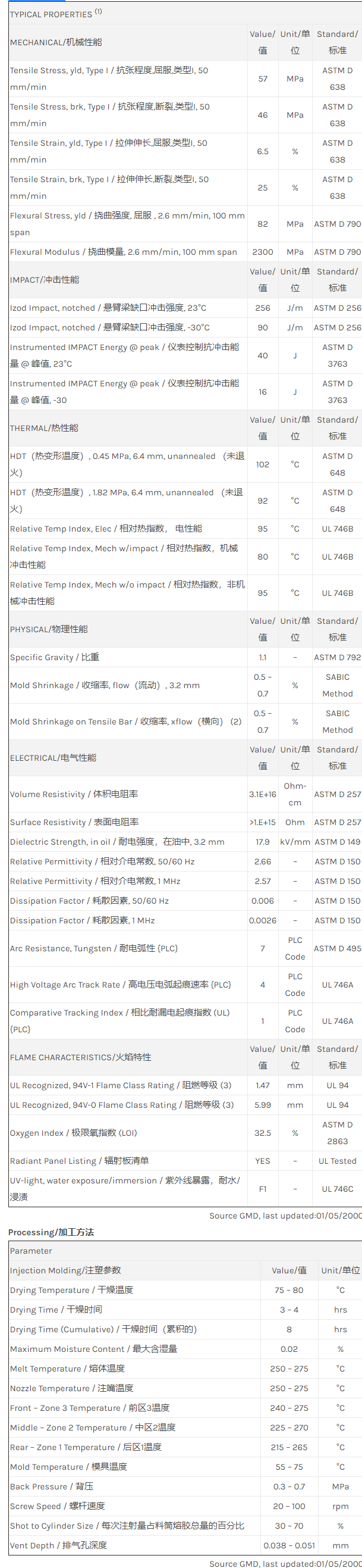 应用范围: 产品描述 Noryl PPO SE100X物性表 非溴化、非氯化、阻燃树脂。改良的生产率与可靠性。HDT(热畸变温度):199F。 相关颜色色号:SE100X-701、SE100X-GN3302、SE100X-BL1757、SE100X-780、SE100X-BR1D176 PPE+PS blend. Unfilled. Non-brominated, non-chlorinated